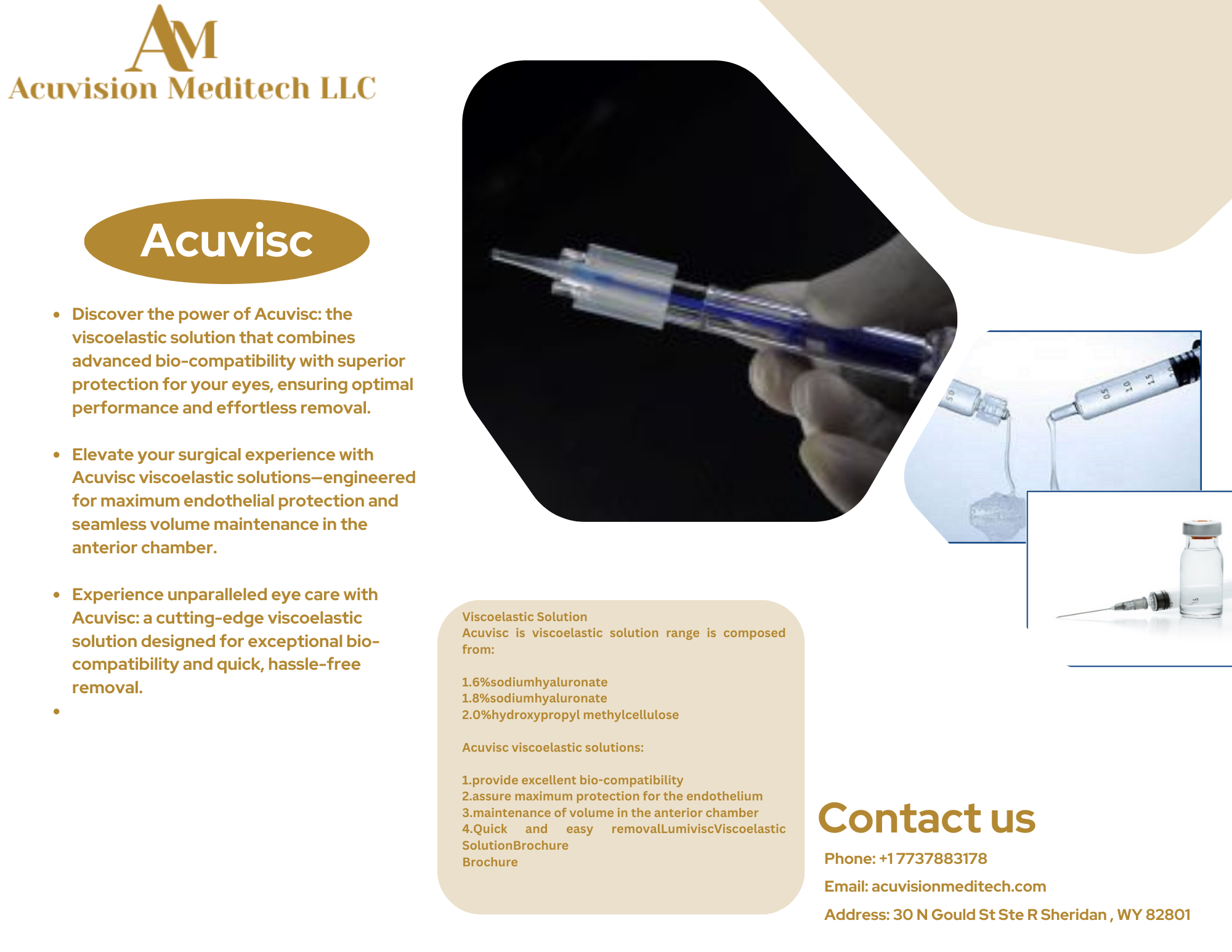 Acuvisc | 2.0%hydroxypropyl methylcellulose | 1.6%sodiumhyaluronate | 1.8%sodiumhyaluronate |